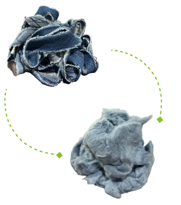 Recycled cotton indigo fiber — made from pre-industrial waste or post-consumer waste. Developed for blending, and crafting high-performance denim yarn without compromising sustainability.